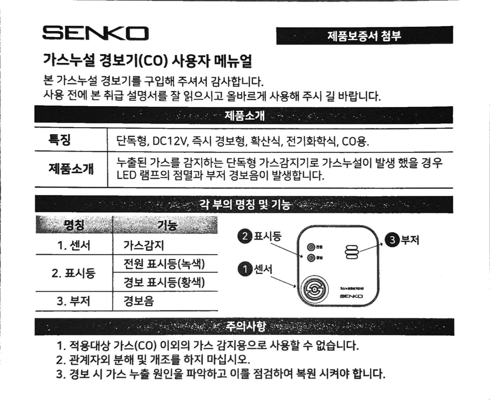 SENKO 일산화탄소 단독형 감지기 SI-600 본문