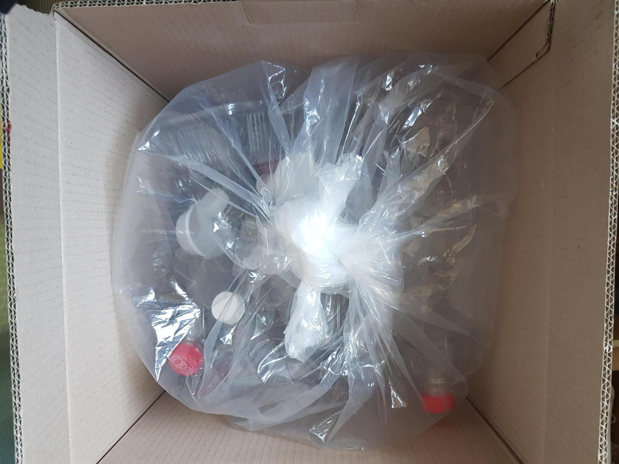 이렇게 모은 플라스틱은 수거 비닐, 박스 2중 포장에 담아