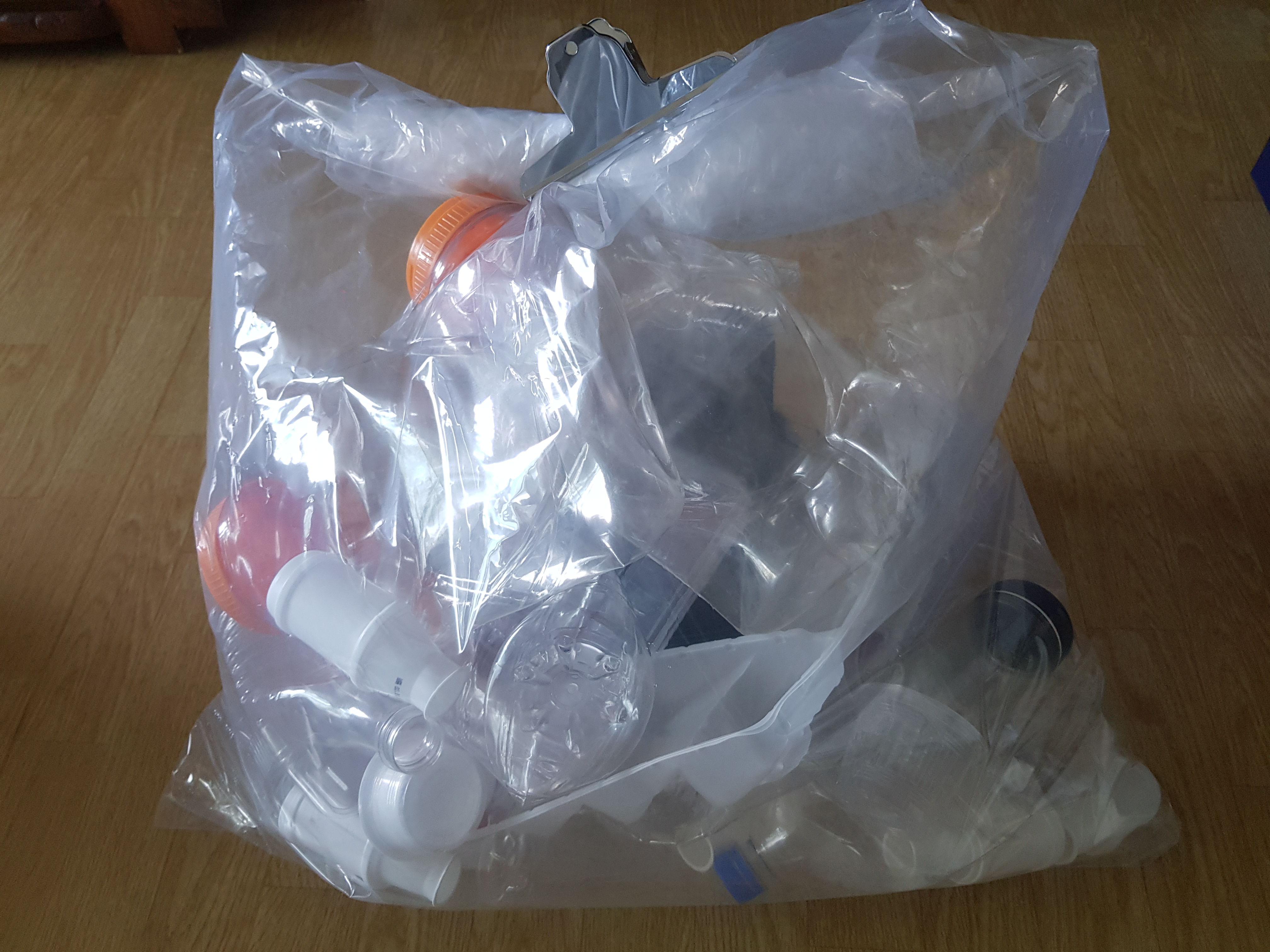 이렇게 모은 플라스틱은 수거 비닐, 박스 2중 포장에 담아