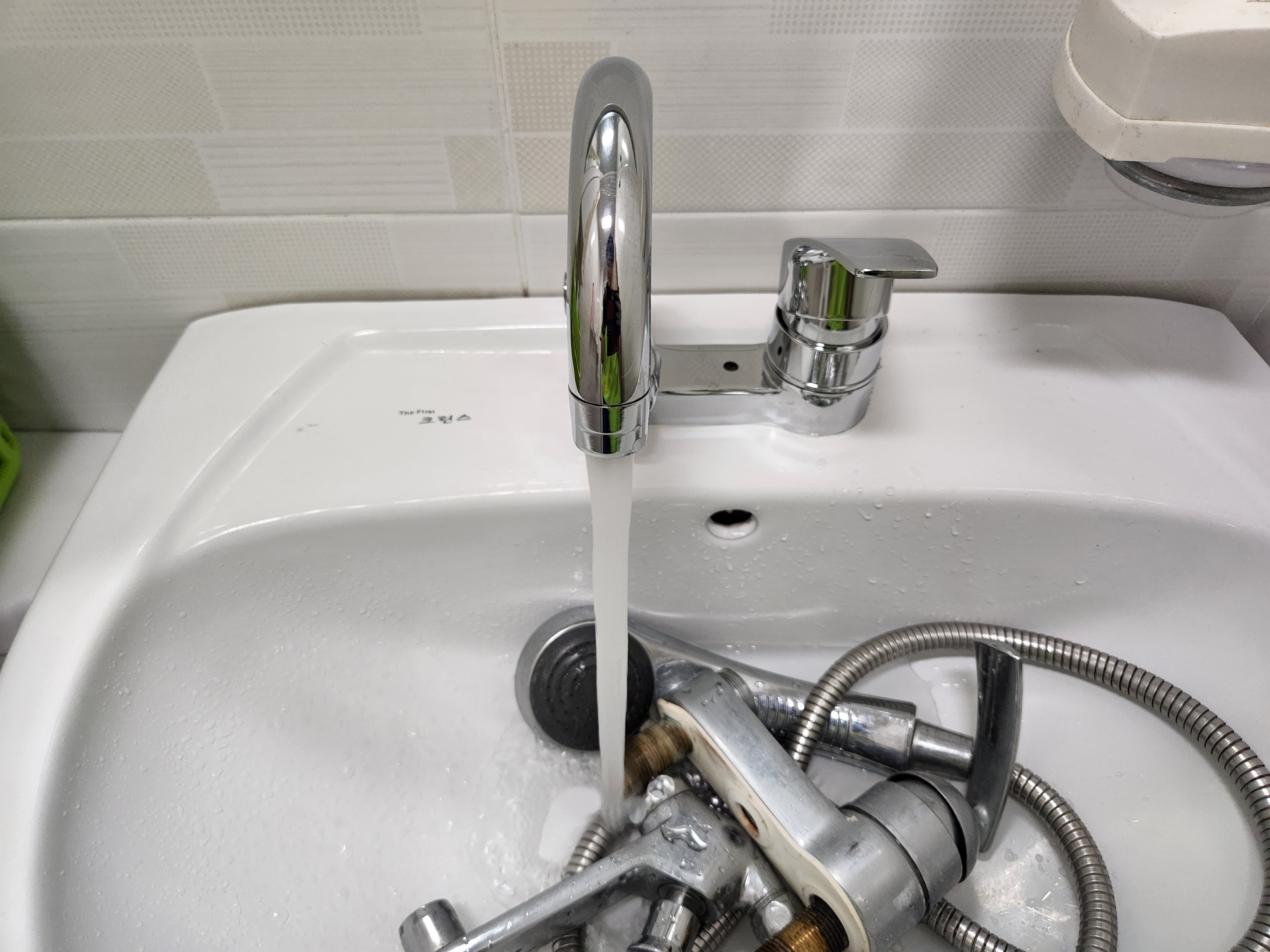 동시에 물이 나오는 기적을 목도하고 새 수전을 주문했습니다.